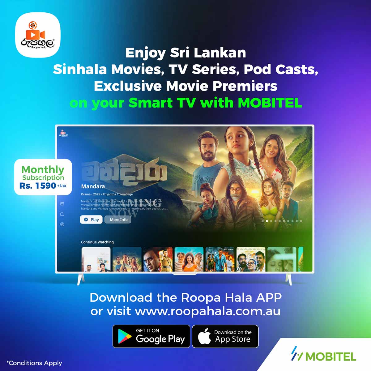 Roopa Hala is optimized for Mobitel 5G to deliver ultra-fast streaming speeds, minimal buffering, low latency, faster content loading, and a cinema-like viewing experience even on mobile devices.