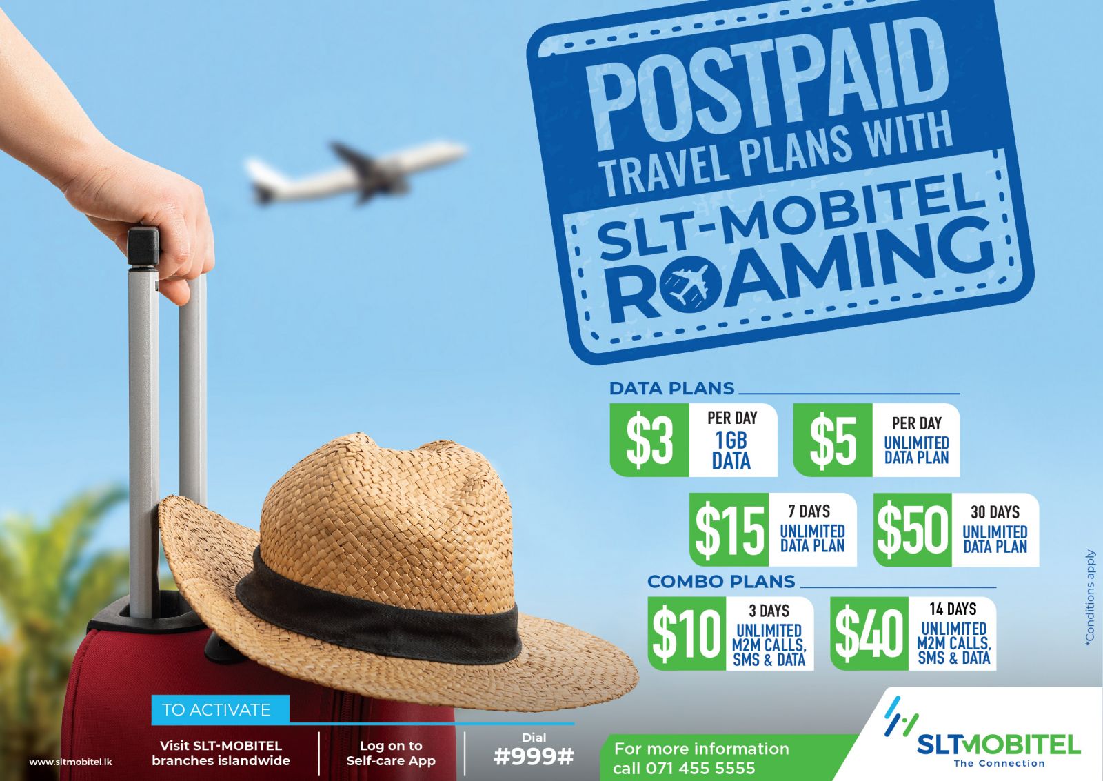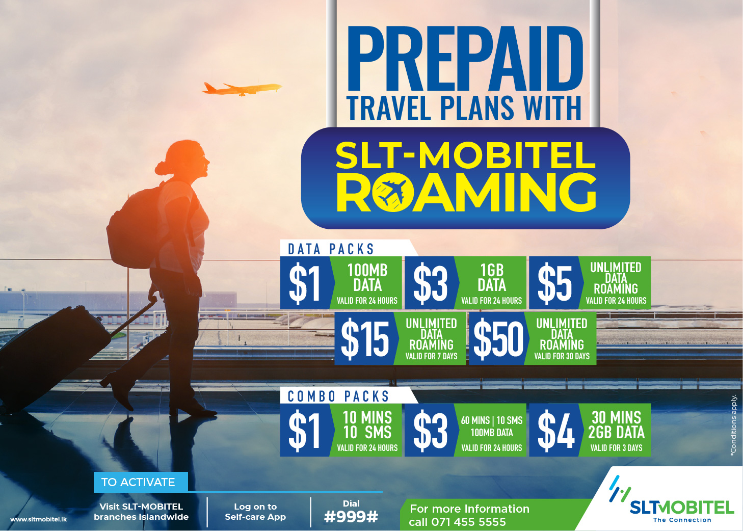 With our Roaming Services you can now enjoy seamless connectivity at affordable rates allowing you to use your own Mobitel number to call, SMS, check emails and surf the net from anywhere