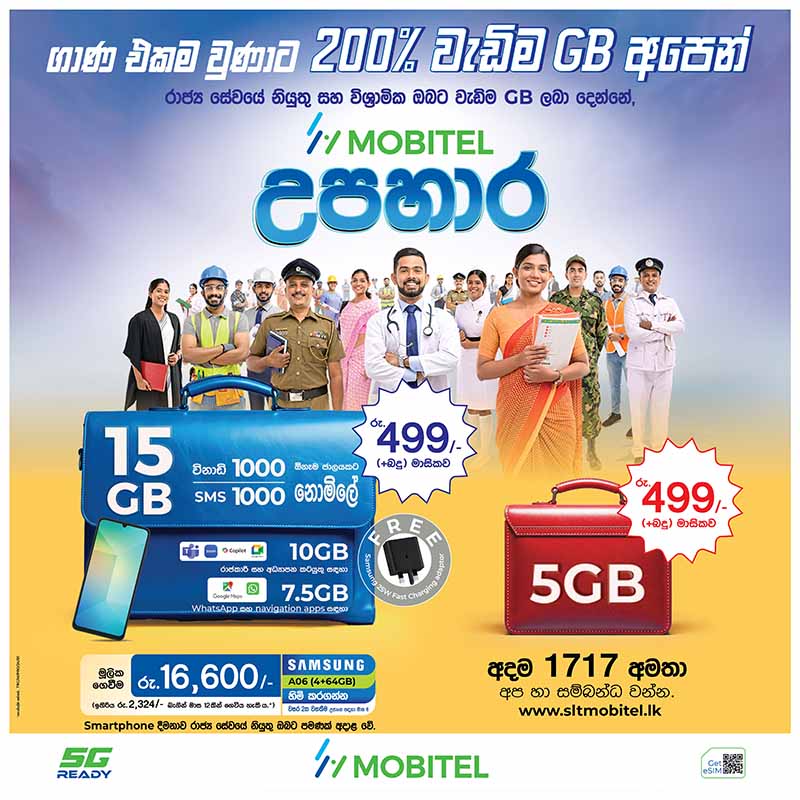 The Uphara Device offer is an exclusive offer to State sector pensioners prepared in collaboration between Mobitel and Department of Pensions of Sri Lanka offering them a facility to obtain a smartphone on a 12- or 24-Month Instalment scheme with a special bundled package, which can be paid through their Monthly pension.