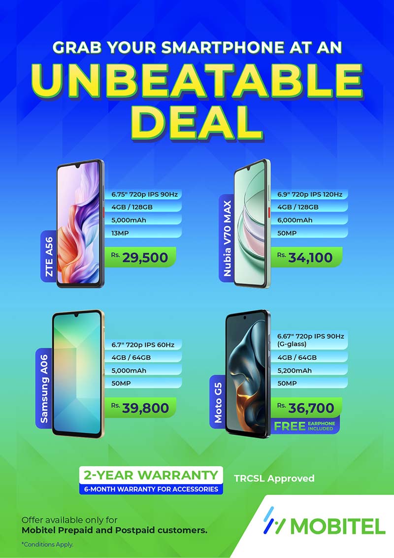 Exclusive opportunity to all Mobitel customers! Whether you are a new or existing Mobitel subscriber with an active Prepaid or Postpaid individual connection you can avail our latest device offer.