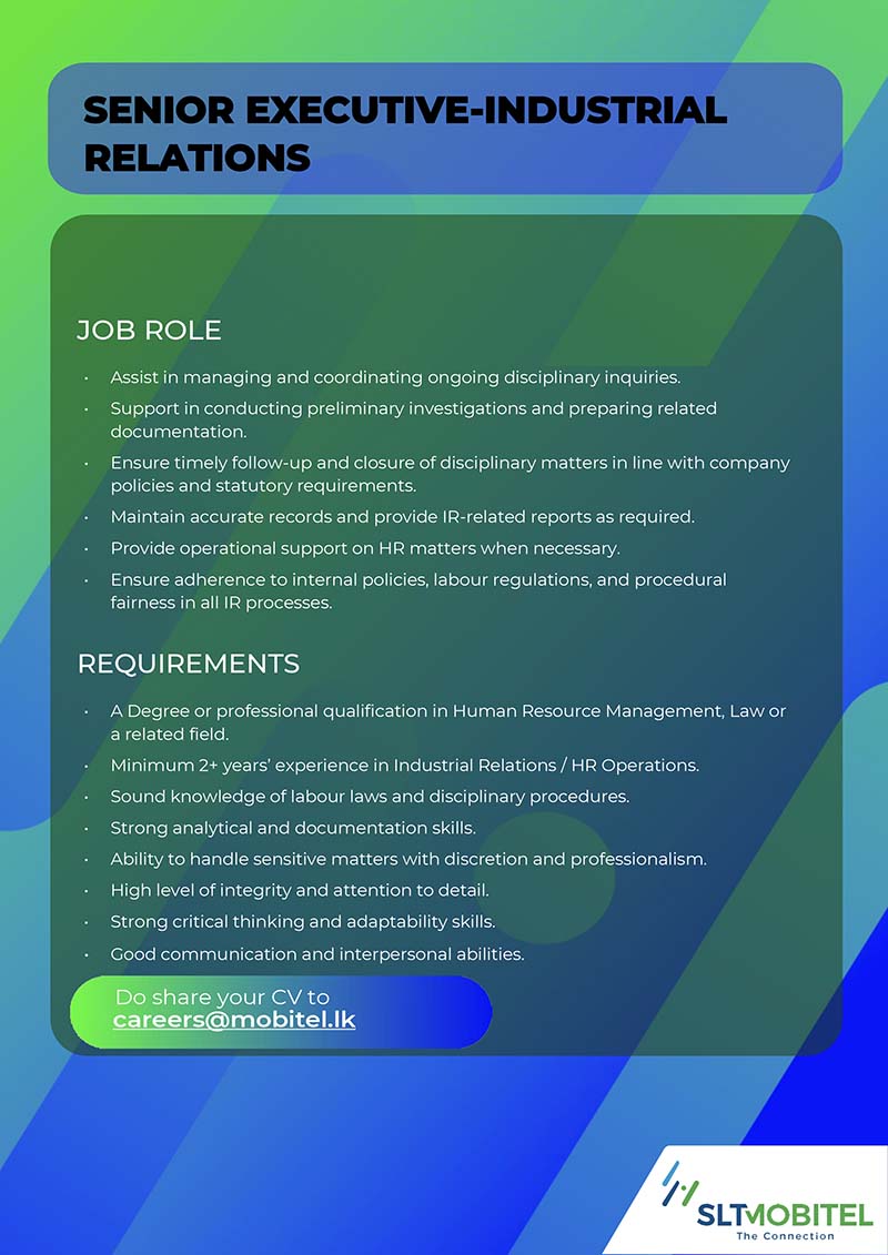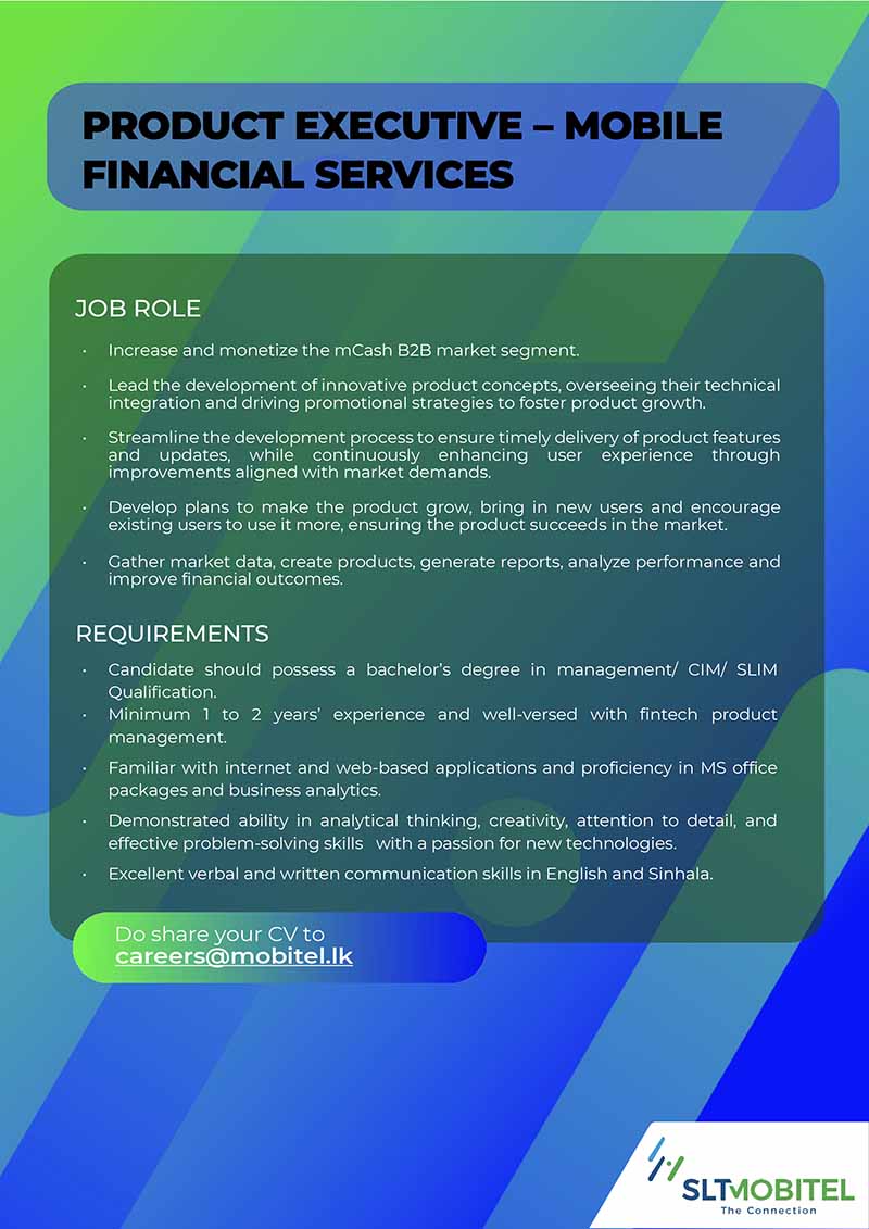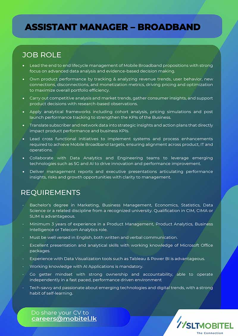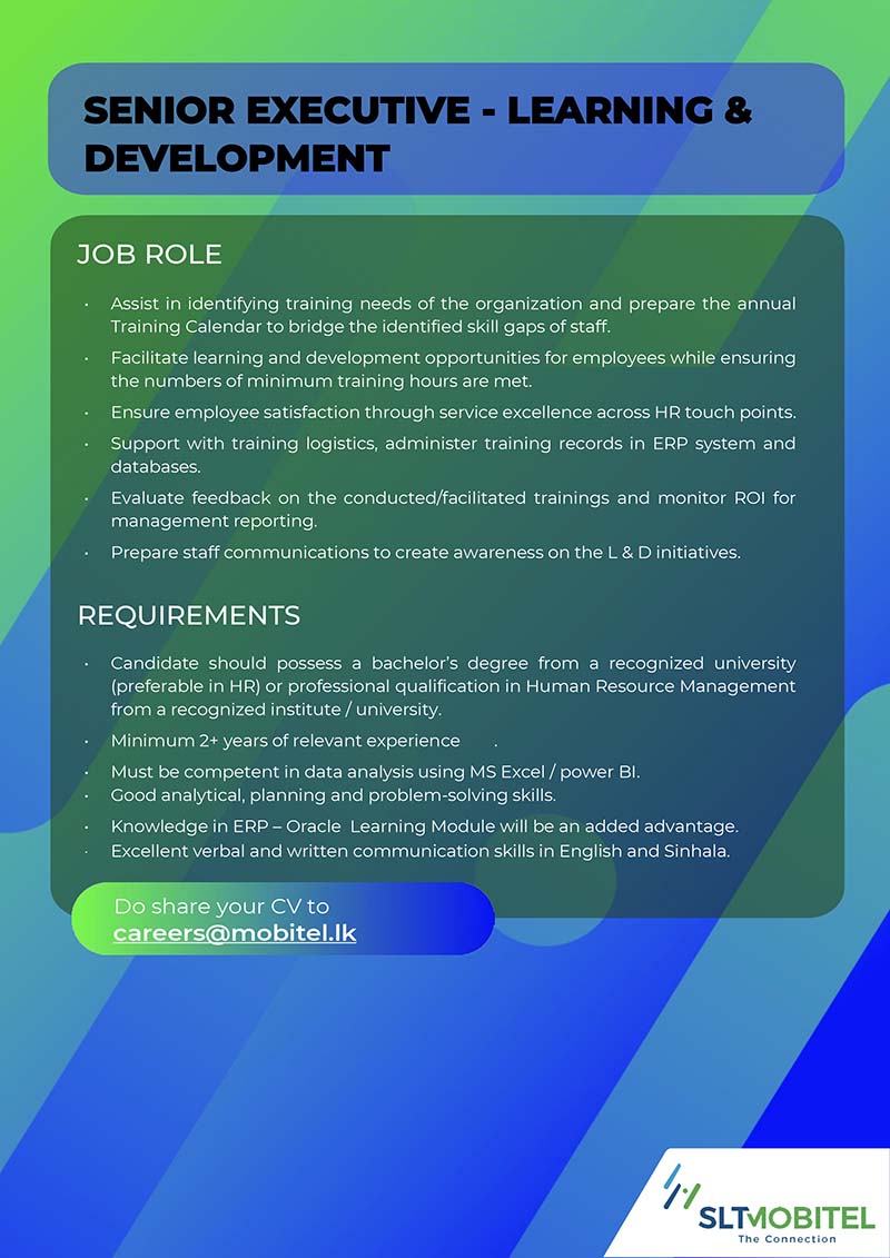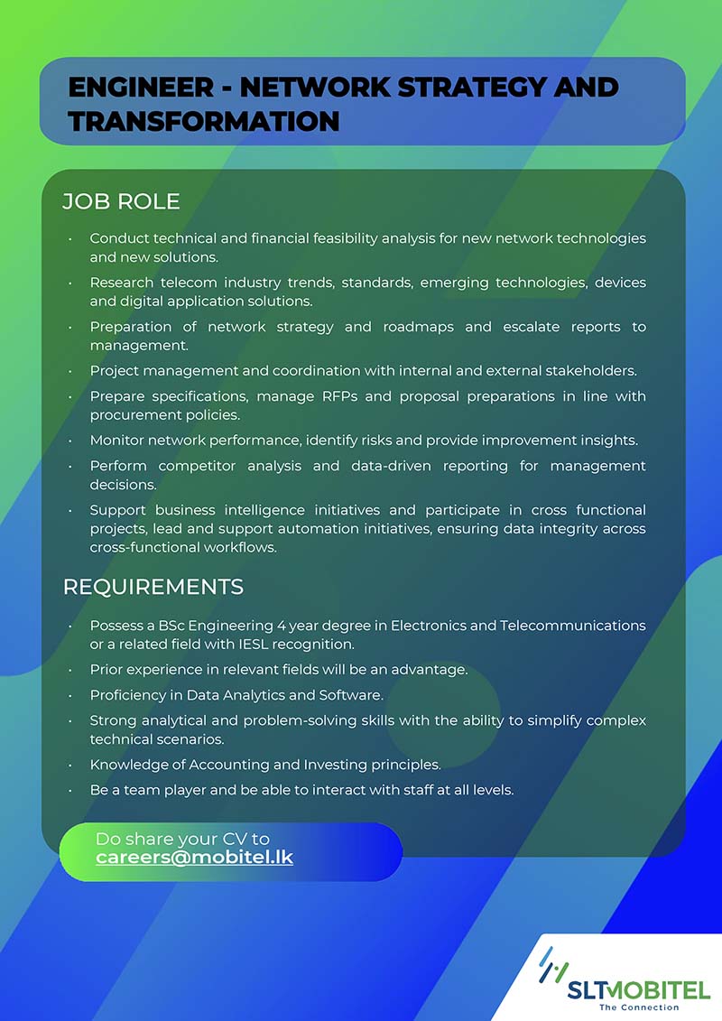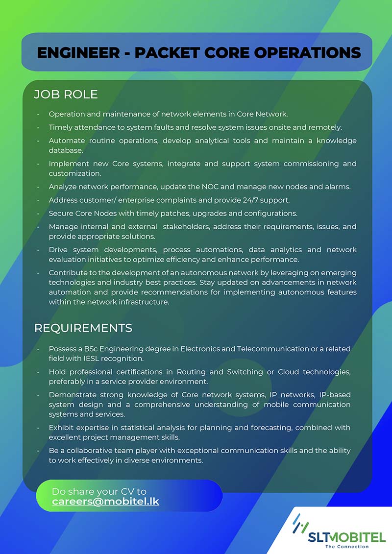 Please send your resume to careers@mobitel.lk