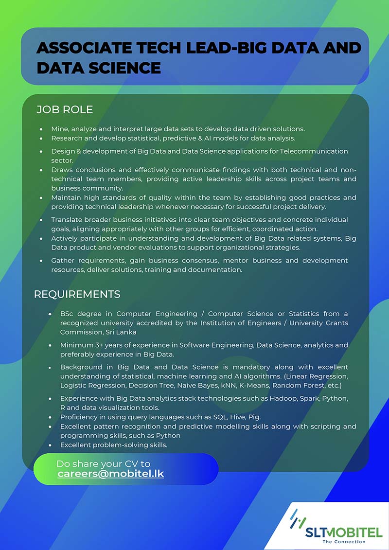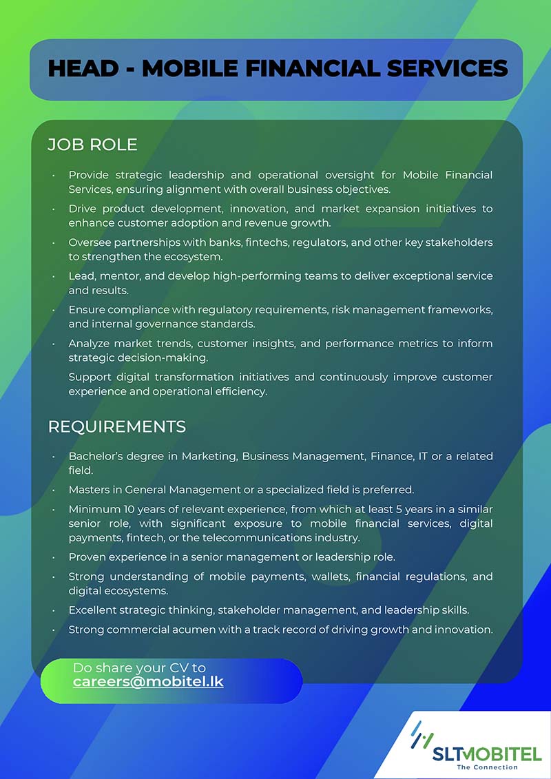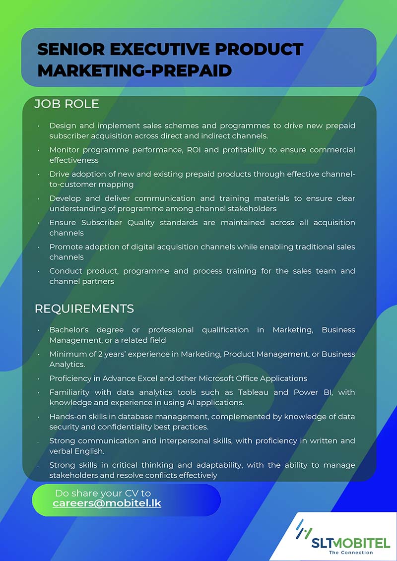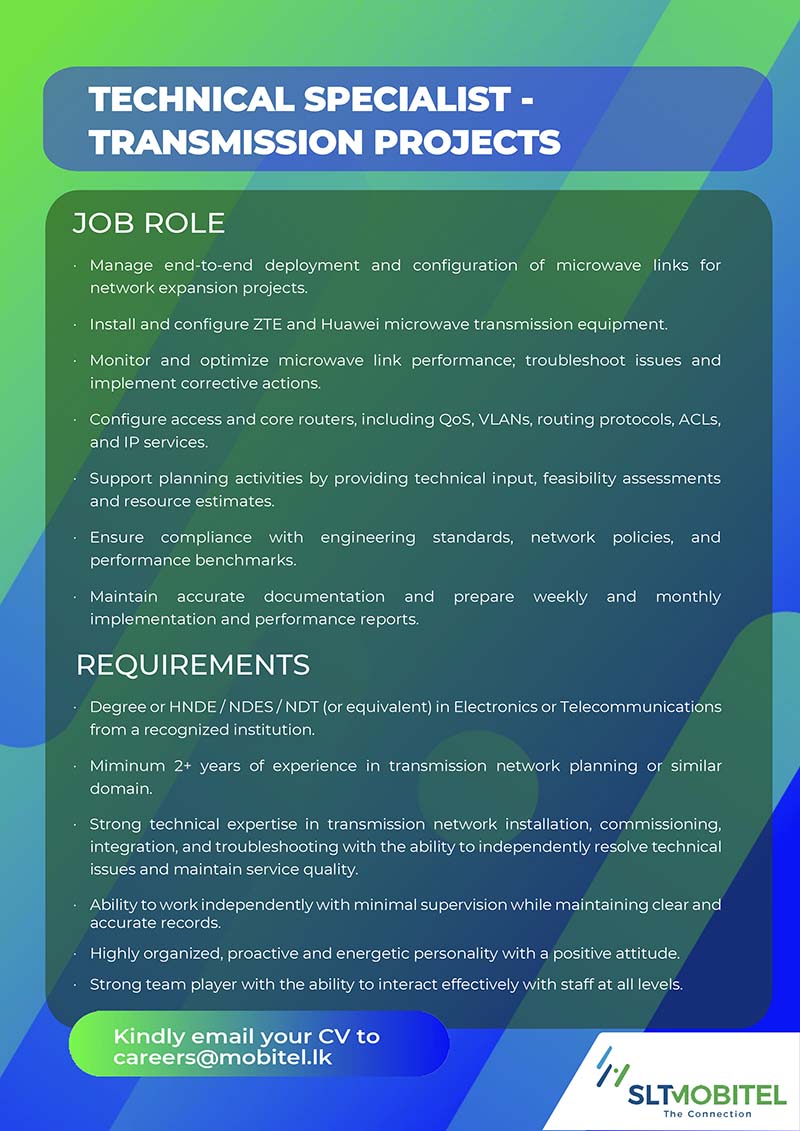 Get in with the most aspiring team that strives for excellence everyday to make Mobitel the best amongst the best