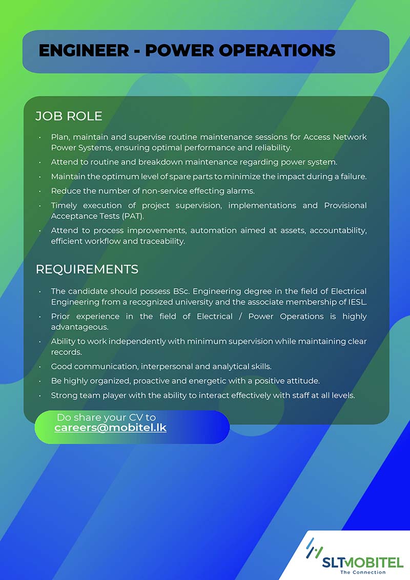 ENGINEER - REGIONAL OPERATIONS & MAINTENANCE (GALLE / MATARA)