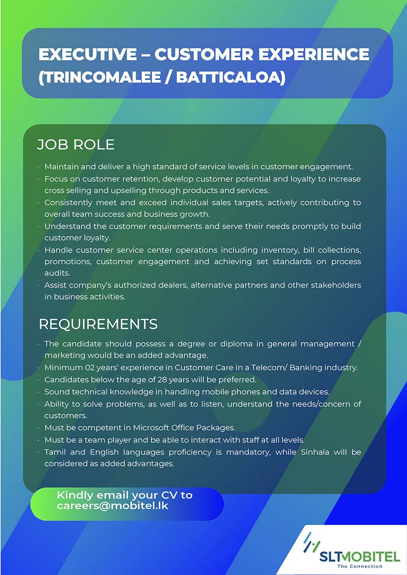 EXECUTIVE – CUSTOMER EXPERIENCE(TRINCOMALEE / BATTICALOA)