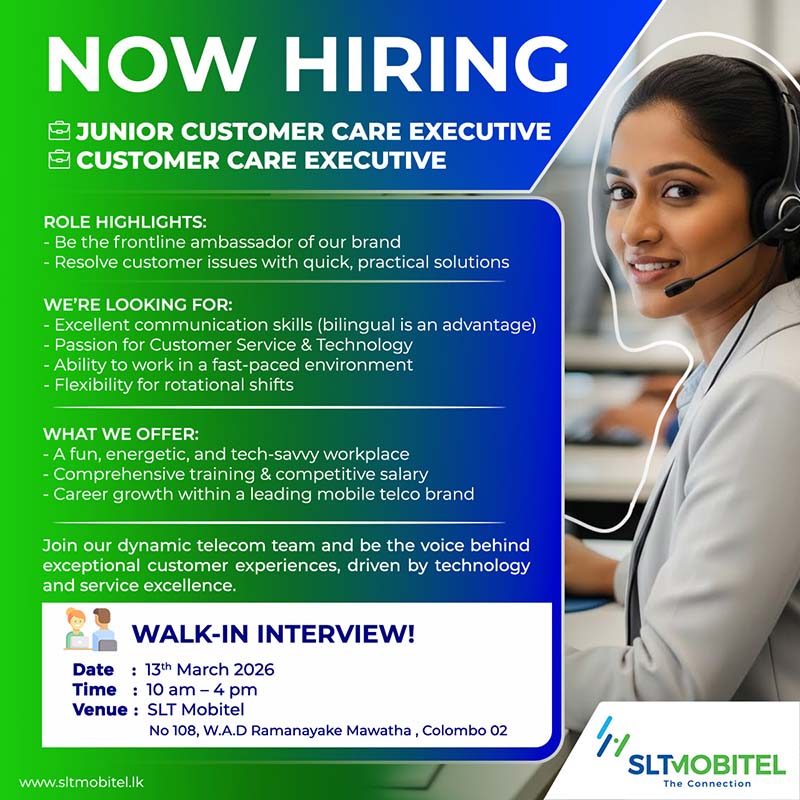 EXECUTIVE / JUNIOR EXECUTIVE – CUSTOMER EXPERIENCE (COLOMBO)