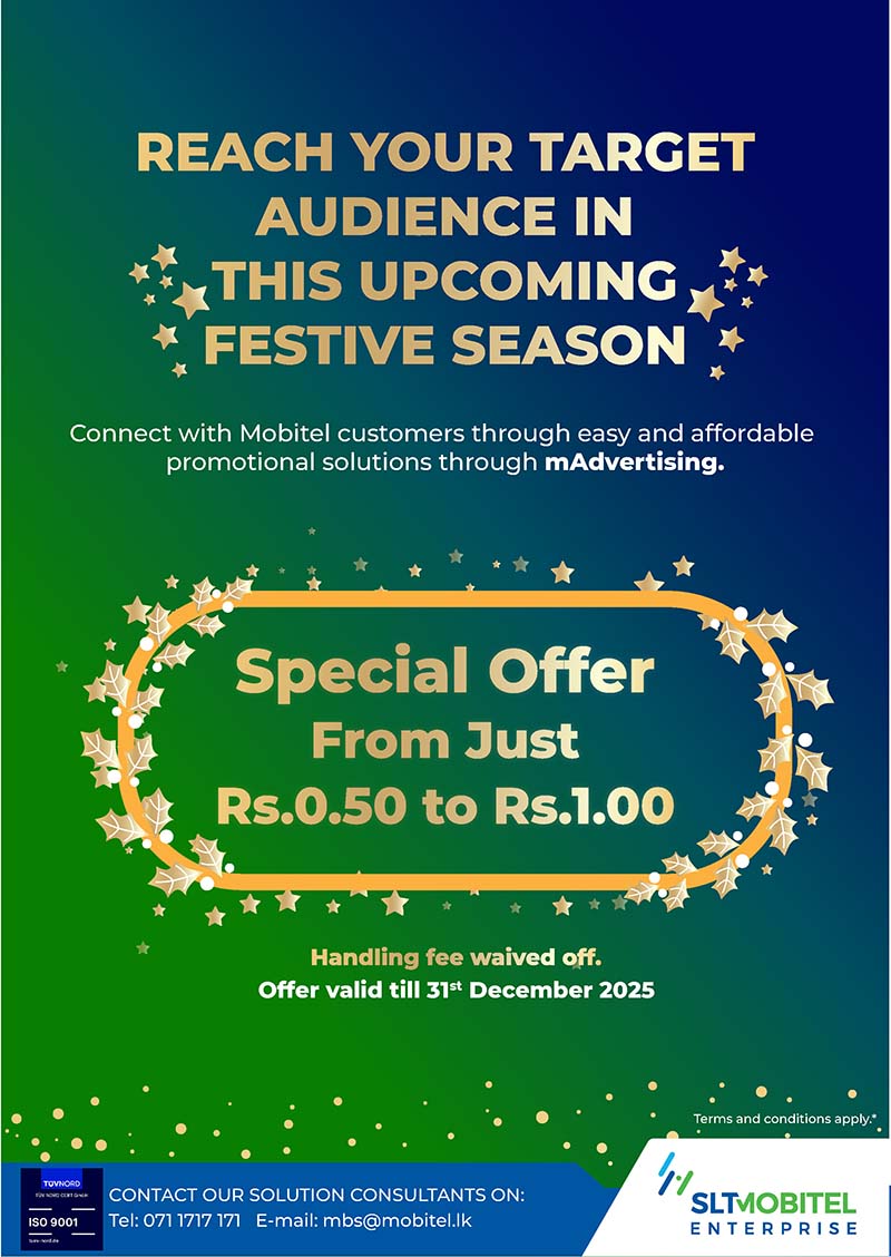 Mobitel mAdvertising allows the enterprises to reach out to their target customers instantaneously with an assortment of digital advertising solutions, Mobitel mAdvertising has to offer. The solution comprises of promotional SMSs, Outbound dialer (OBD) Voice Advertisements, sponsored insertions on Missed Call Alerts, Sponsored IVR exist messages and USSD interactive promotional Campaigns to over ten million Mobitel subscribers across the island.