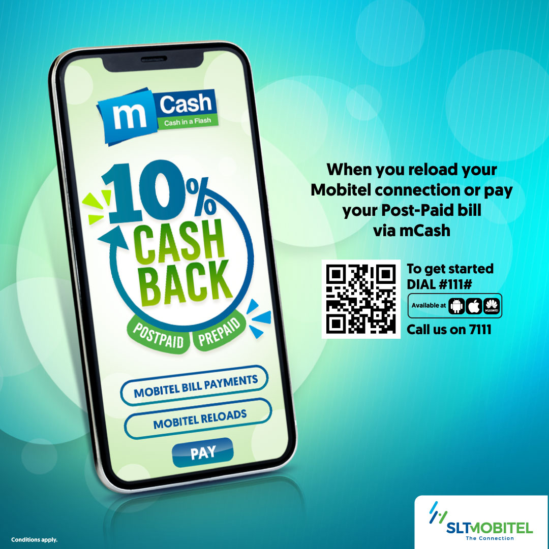 Pay your Mobitel payments via mCash and get a 10% cashback instantly. Dial #111# to get started and download the mCash App