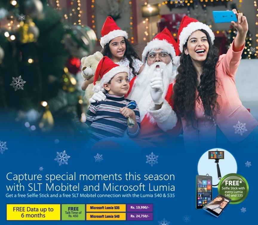 The National Mobile Service Provider SLT Mobitel has partnered with Microsoft yet again for a special seasonal promotion. The promotion has been launched for the Microsoft Lumia 540 and the Microsoft Lumia 535 devices. All customers who purchase wither of these devices are entitled to a free selfie stick and also a special bundle from SLT Mobitel.