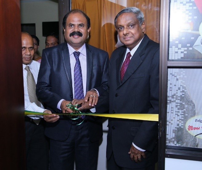 Caption (from left): The state-of-the-art refurbished Call Centre being opened by NDDCB Director General Mr. K Gamage, SLT Mobitel Chairman Mr. P G Kumarasinghe Sirisena and NDDCB Chairman Prof. Ravindra Fernando.