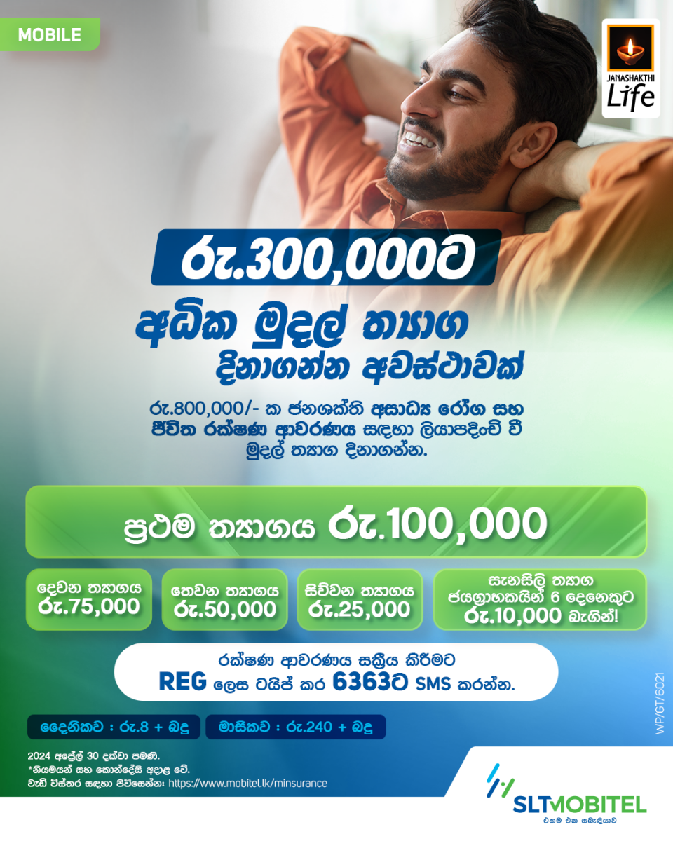 - ජයග්රාහකයින් 0712755777 ඔස්සේ පමණක් සම්බන්ද කරගනු ඇත. දුරකථන වංචාකරුවෙකු විශ්වාස කිරීමෙන් පාරිභෝගිකයාට මුදල් අහිමි වුවහොත්, එවැනි අවස්ථාවන් සඳහා SLT Mobitel වගකීම දරන්නේ නැත.