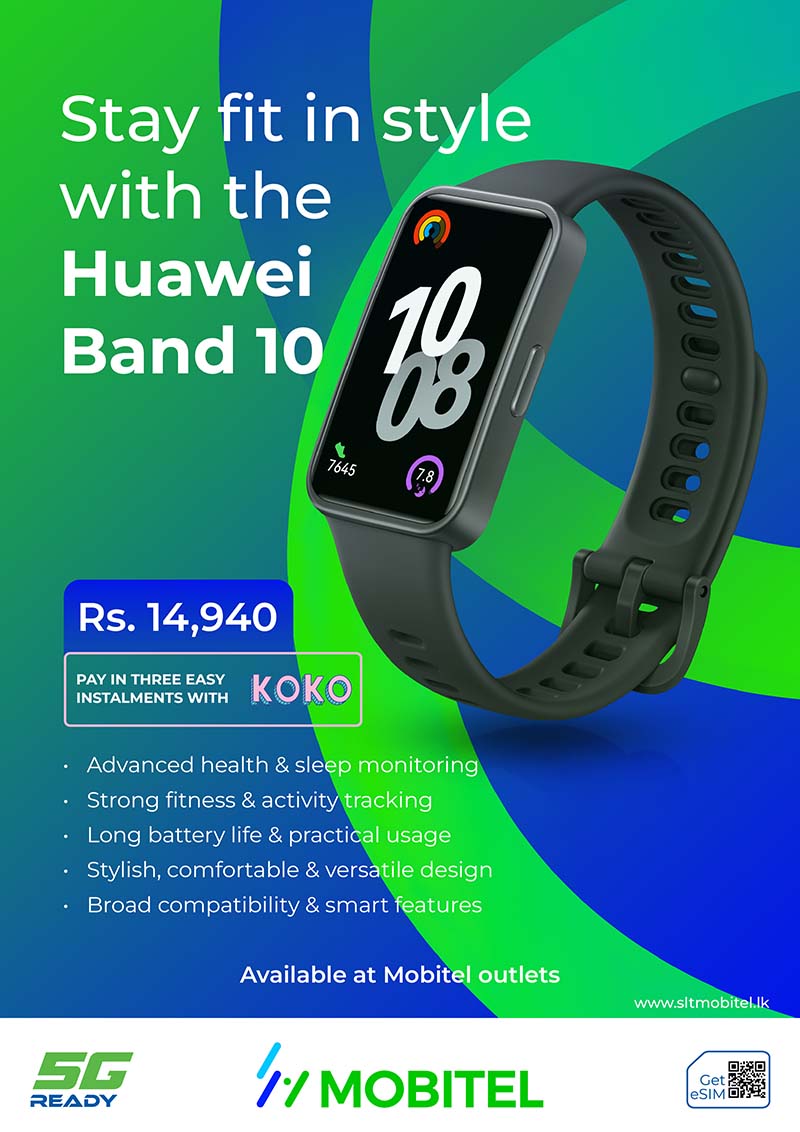 The Huawei Band 10 is available at all SLTMobitel island wide.